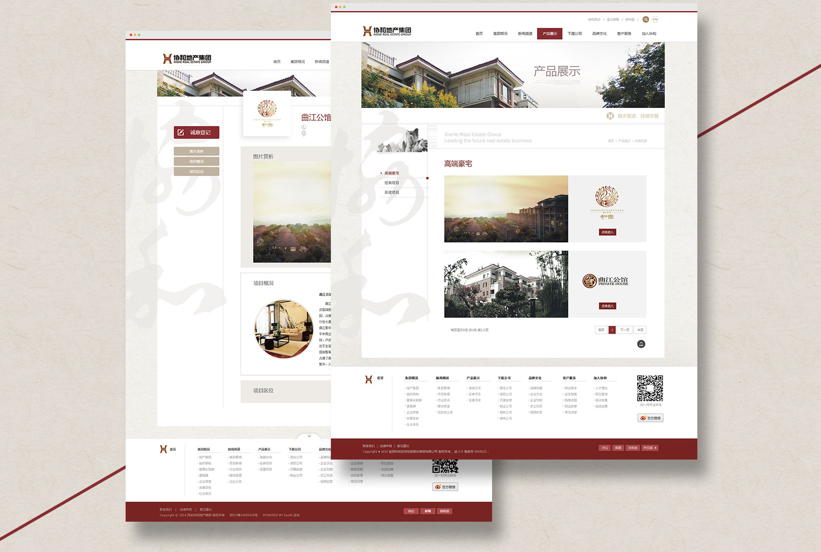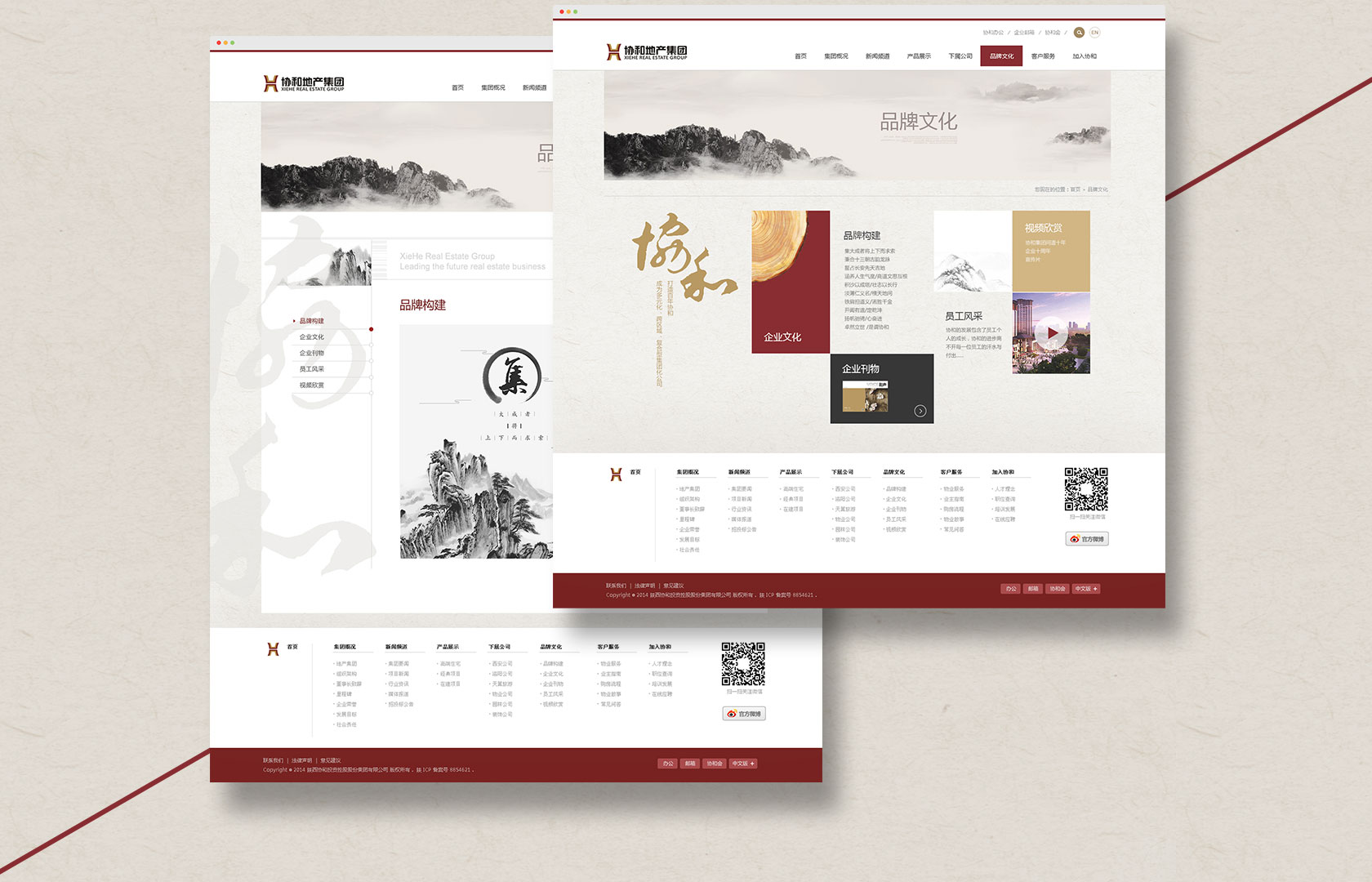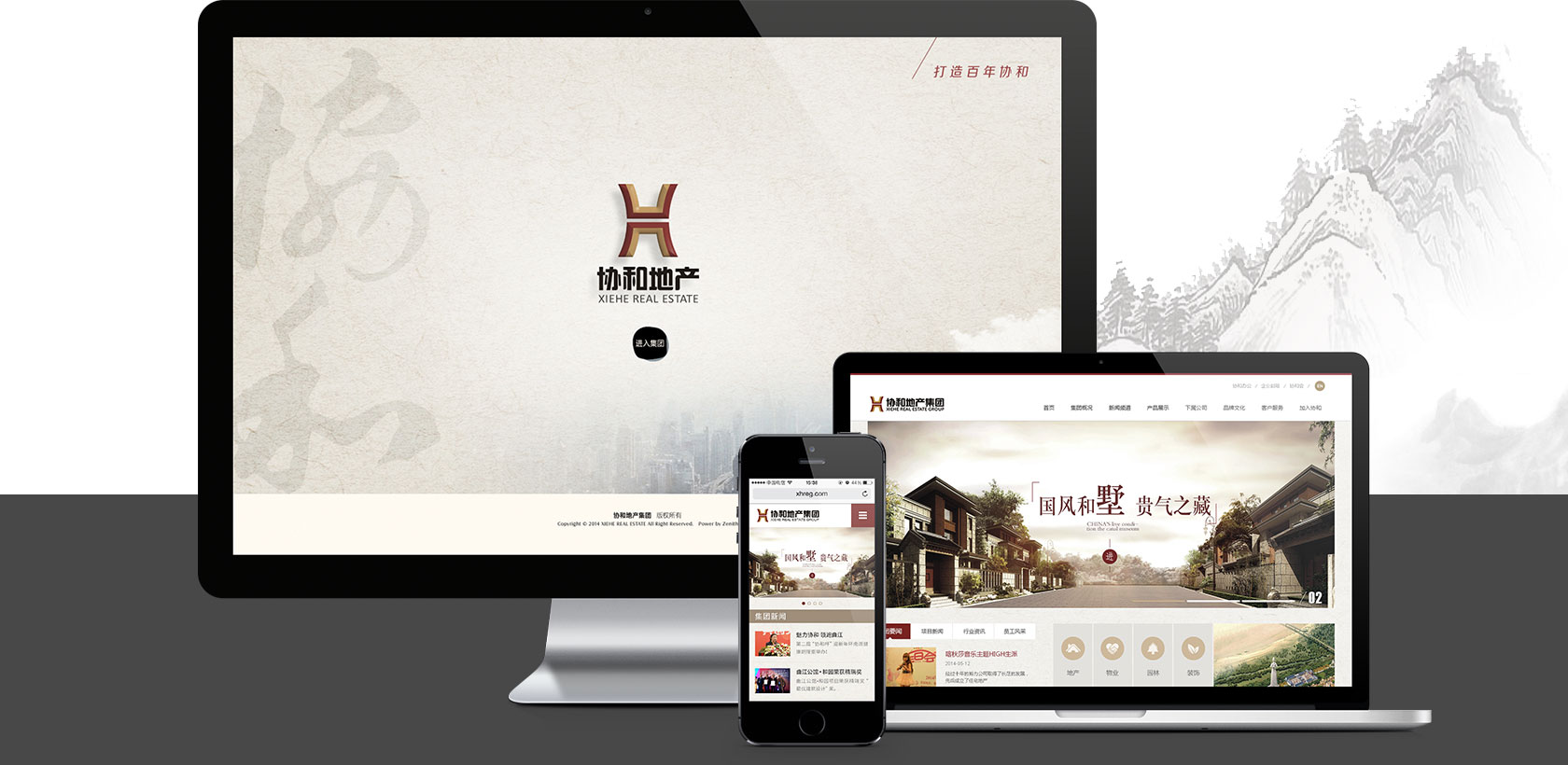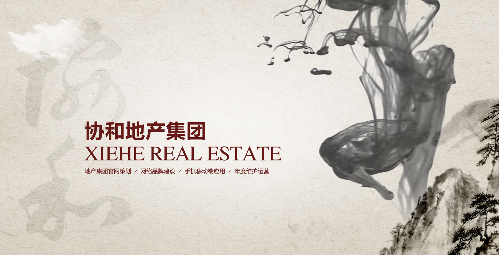 整体色调采用古典深厚的中国风情为主题基色。特别强调的是首页片头动画最具浓厚的中国精神,将协和地产集团品牌精神用中式水墨的形式,唯美到位的深刻表达。