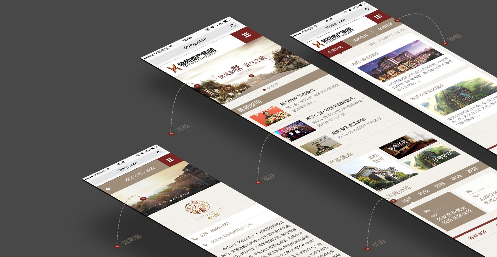 协和地产地产集团以中国文化核心精神为主导的品牌文化精神。整体品牌形象互动充分表达了企业所需要呈现的“精气神”,从典雅沉稳的色调,清正高雅的的书卷气息,导航编排的巧妙便捷概括,内容格局清新直接,充分体现地产集团的行业特性及品牌独特性。从地产行业中脱颖而出。